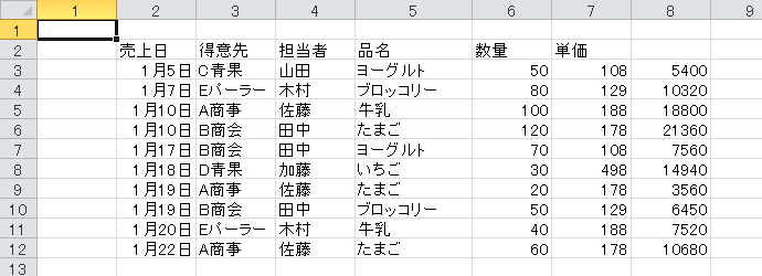 数量に単価を掛けたものを10行分連続で表示してみましょう