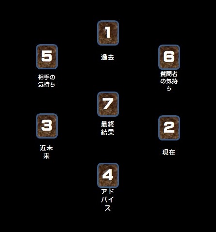 ジャンルを選ばないオールマイティーなスプレッド ヘキサグラム・スプレッド(7枚引き)…特徴: 星の形(六芒星)にカードを配置します。用途: 比較的複雑な問題や、より深い洞察が必要な場合に、問題の原因から結果、対策までを多角的に読み解けます 大アルカナ22枚と小アルカナ56枚の合計78枚を使用して占います こちらは汎用の占いとなりますので占いたい事柄を具体的に頭に浮かべてカードを引くボタンを押してください