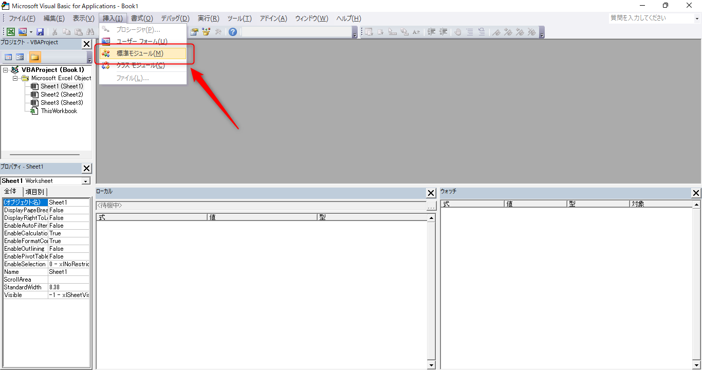標準モジュールをクリック