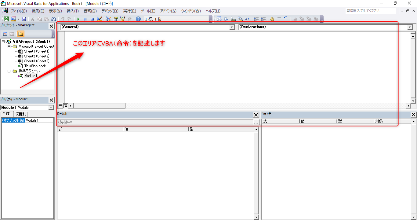 それでは実際にVBA(命令)を使いたい場合どこへ記述すればよいのでしょうか?