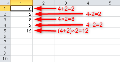 足し算(+)、引き算(-)はそのままですが掛け算と割り算はそれぞれ(*)と(/)を使用することに注意が必要です