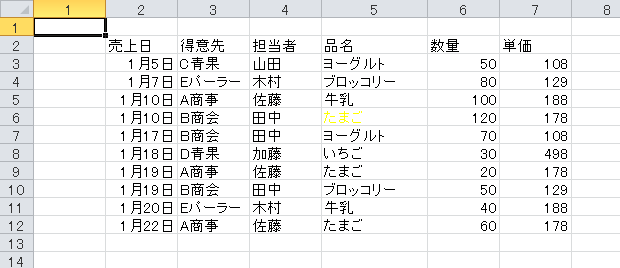 行6、列5のセル(たまご)の文字色を黄色に変更してみましょう
